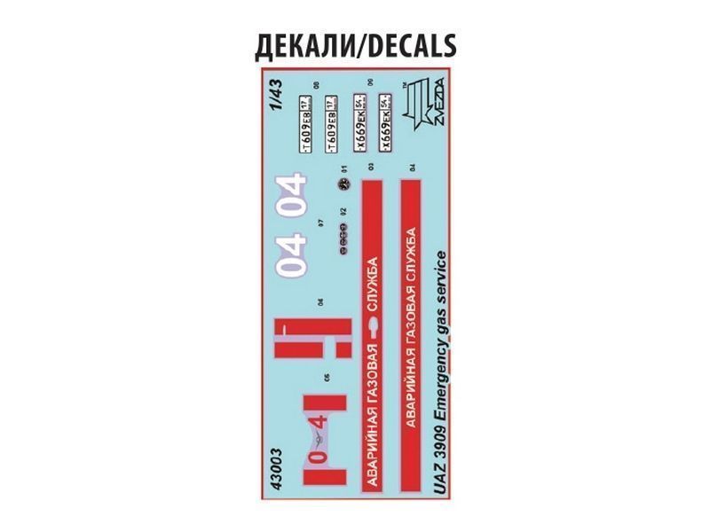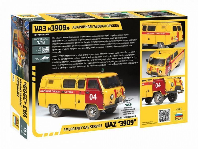 Сборная модель ZVEZDA УАЗ-3909 "Буханка" Аварийная газовая служба, 1/43