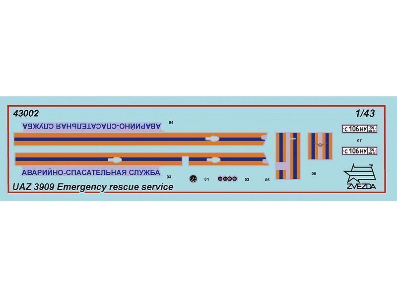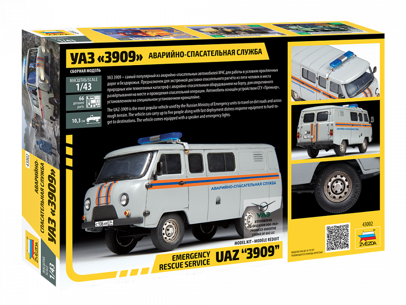Сборная модель ZVEZDA УАЗ-3909 "Буханка" Аварийно-спасательная служба, 1/43