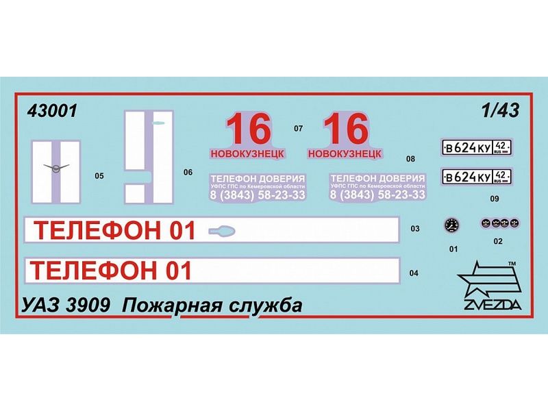 Сборная модель ZVEZDA УАЗ-3909 "Буханка" Пожарная служба, 1/43
