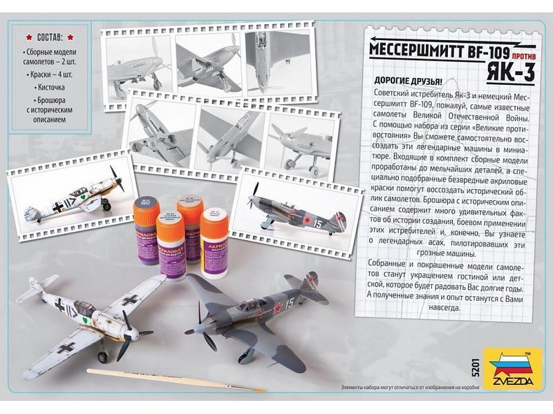 Сборная модель ZVEZDA Великие противостояния "Мессершмит Bf-109 против Як-3" (сборка без клея), 1/72