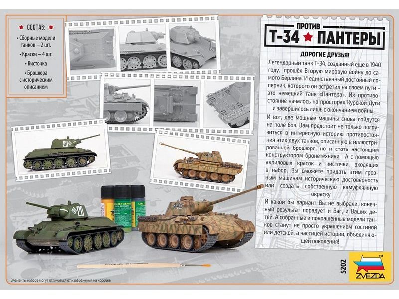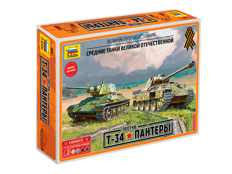 Сборная модель ZVEZDA Великие противостояния "Т-34 против Пантеры" (сборка без клея), 1/72