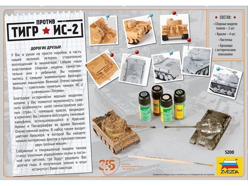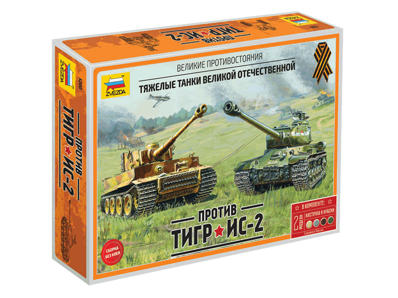 Сборная модель ZVEZDA Великие противостояния "Тигр против Ис-2" (сборка без клея), 1/72