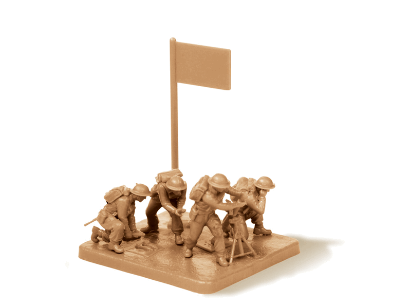 комплект пластиковых деталей для сборки 4 неокрашенных солдатиков и одного минометаотрядная подставка с флагом
