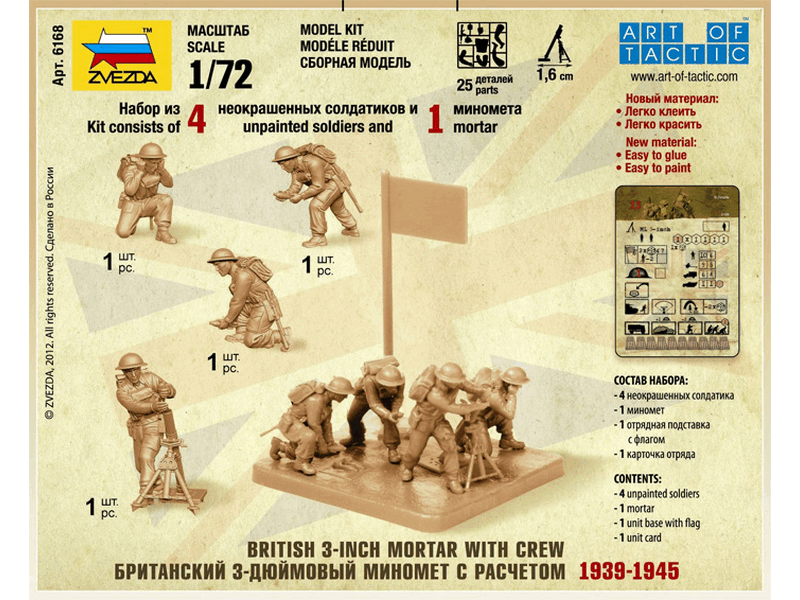 Сборные солдатики ZVEZDA Британский 3-хдюймовый миномет с расчетом 1939-42гг, 1/72