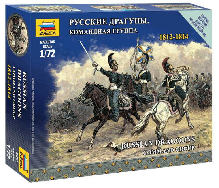 Сборные солдатики ZVEZDA Наполеоника: Русские драгуны. Командная группа, 1/72