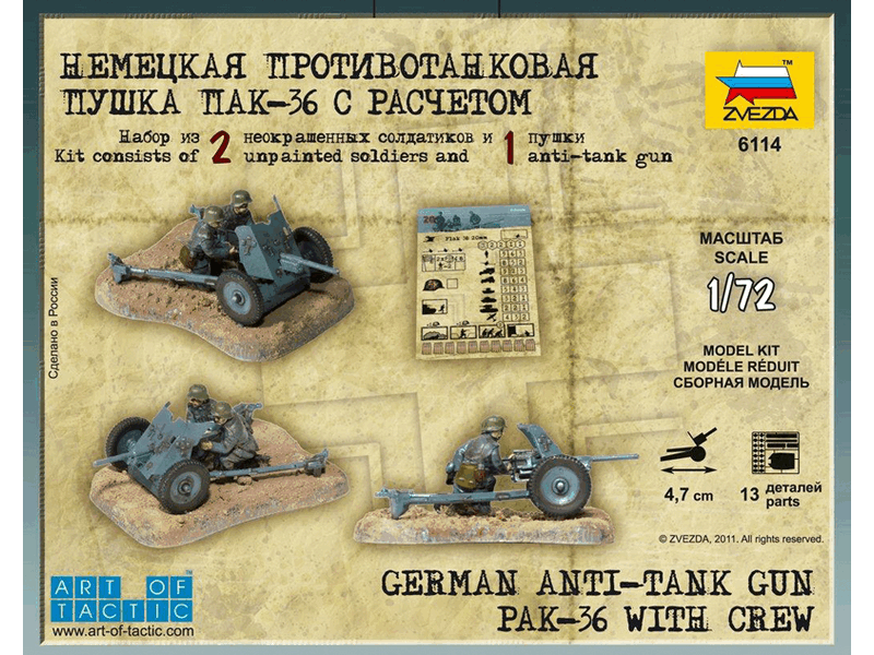 Пак-36 прекрасно дополнит коллекцию любого моделиста. Для игроков игровой системы “Великая Отечественная война”, пушка составит костяк противотанковой обороны Вермахта.