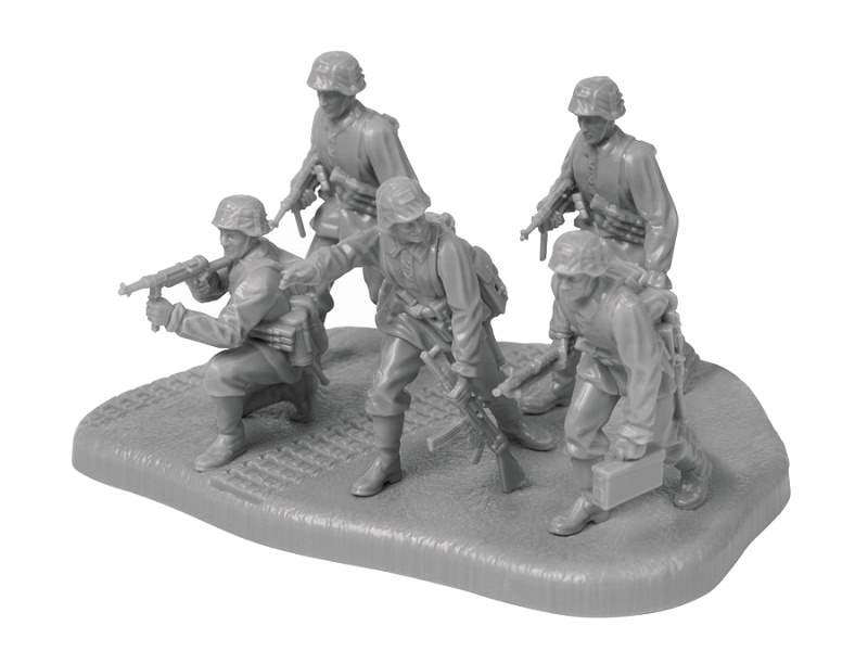 комплект пластиковых деталей для сборки 5 фигурок немецких панцергренадеровотрядная подставки с флагом