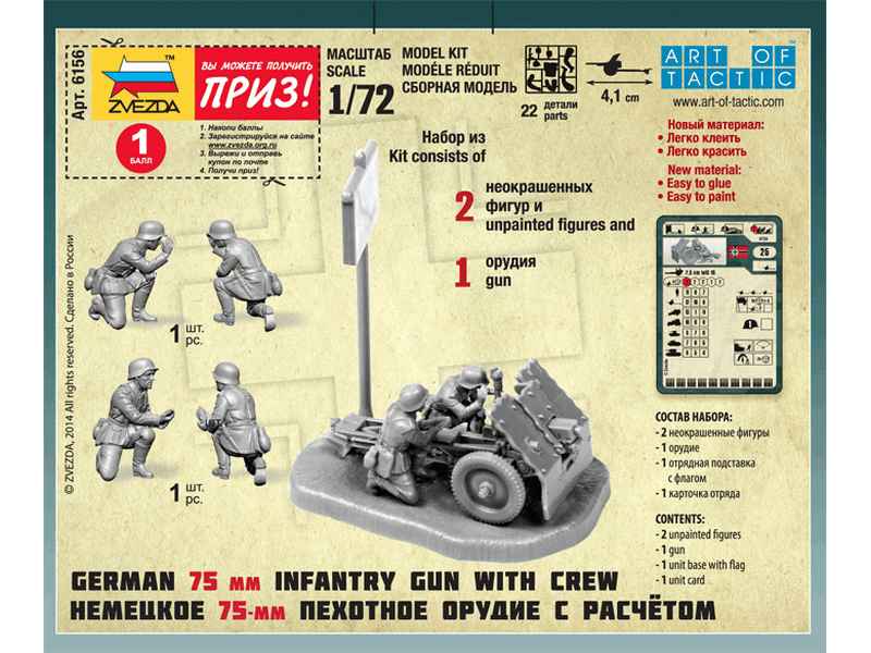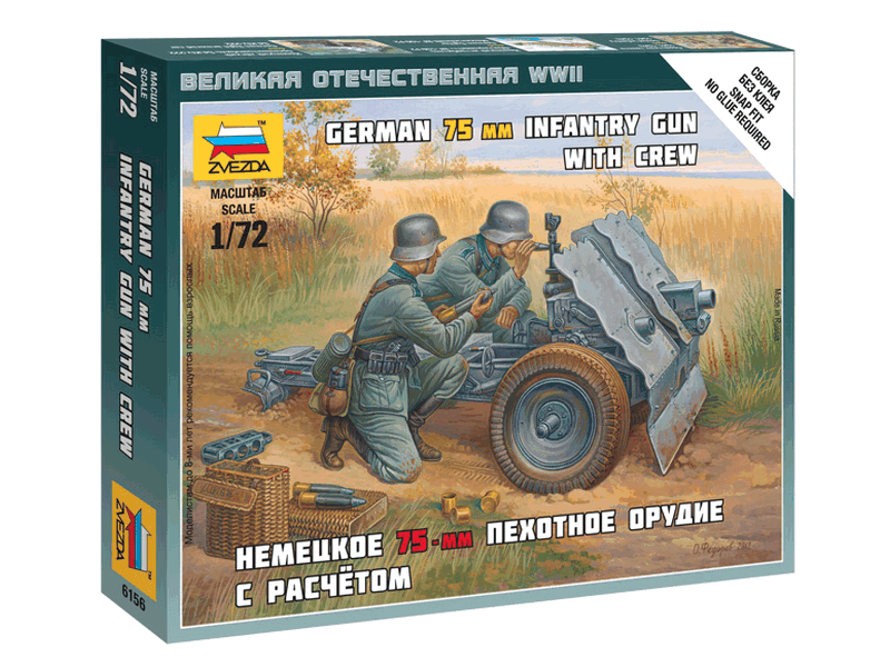 Сборные солдатики ZVEZDA Немецкое 75-мм пехотное орудие с расчетом, 1/72