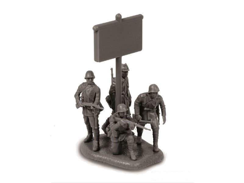Комплект пластиковых деталей для сборки 4 фигур.Отрядная подставка.