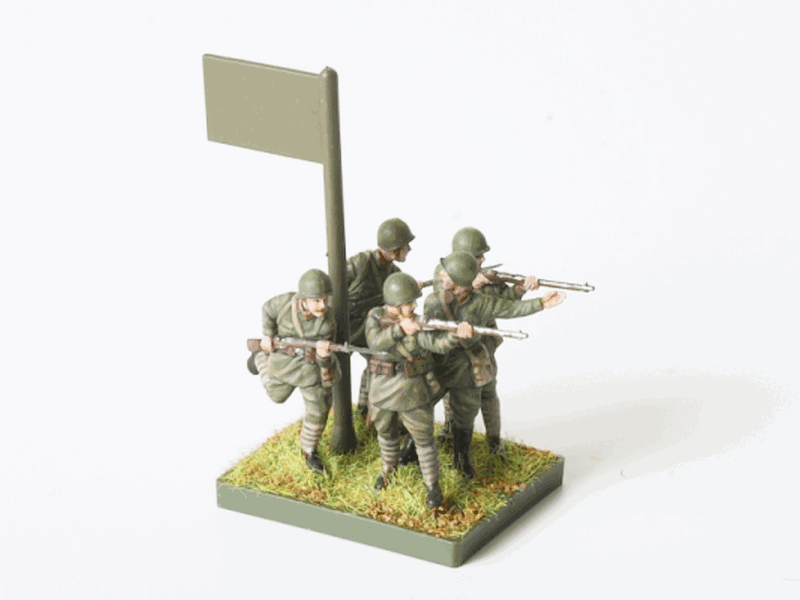 комплект пластиковых деталей для сборки 10 неокрашенных фигур2 отрядные подставки с флагом