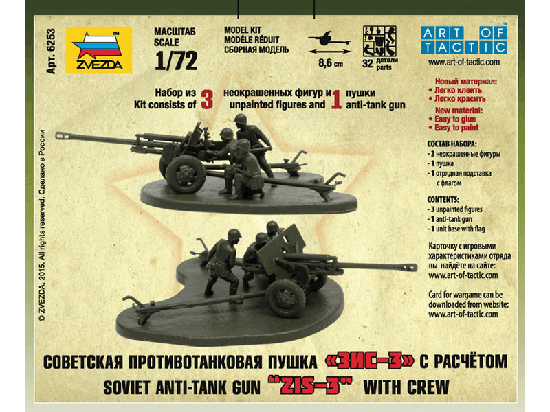 Сборные солдатики ZVEZDA Советская противотанковая пушка ЗИС-3, 1/72