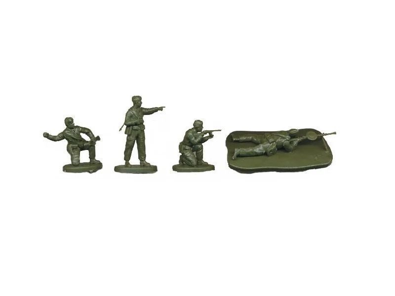 комплект пластиковых деталей для сборки 4 неокрашенных солдатикаотрядная подставка с флагом