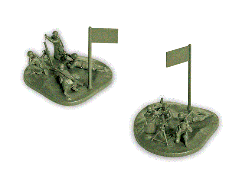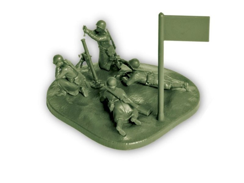 комплект пластиковых деталей для сборки 4 неокрашенных фигур и миномётаотрядная подставка с флагом
