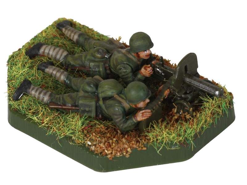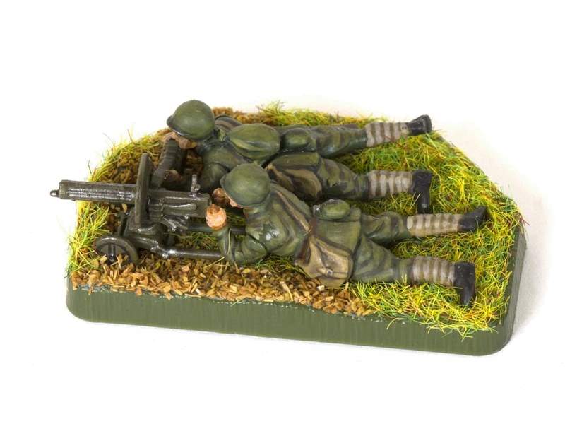 Комплект пластиковых деталей для сборки 2 пулемётных расчётов из пулемёта и 2 фигур каждый.Подставка для каждого расчёта.