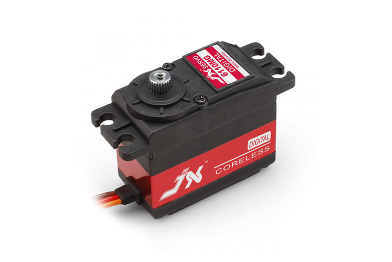 Цифровая сервомашинка стандартного размера с металлическим редуктором. Оснащена электродвигателем без сердечника. Корпус выполнен из металла и пластика.