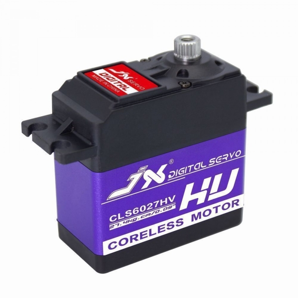 Цифровая высоковольтная сервомашинка стандартного размера с металлическим редуктором. Оснащена электродвигателем без сердечника. Корпус выполнен из металла и пластика.