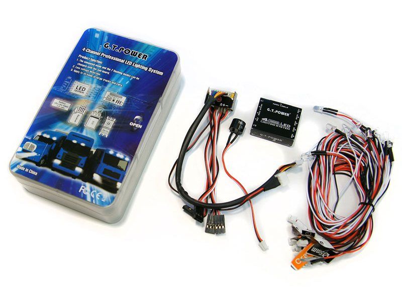 4-канальная светодиодная система освещения G.T.Power с блоком управления (контроллером) для радиоуправляемых автомоделей и грузовиков.