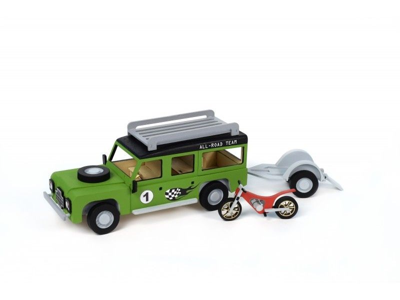 Представленный собранный автомобиль Land Rover МОТОГОНЩИК украсит любую коллекцию деревянных моделей.