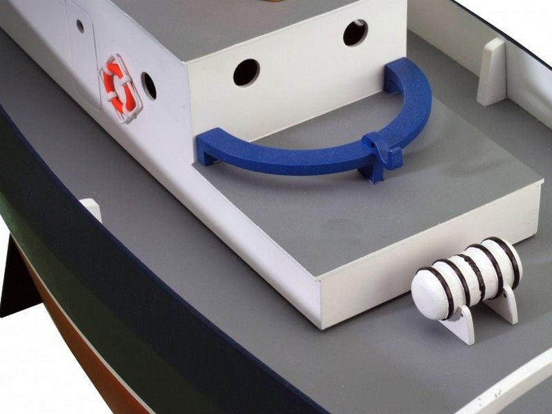 Предусмотрено место для размещения аппаратуры радиоуправления. Модель состоит только из деревянных и металлических деталей, никакого пластика! Сейчас набор комплектуется мотором, гребным валом и винтом. В набор включена подставка.