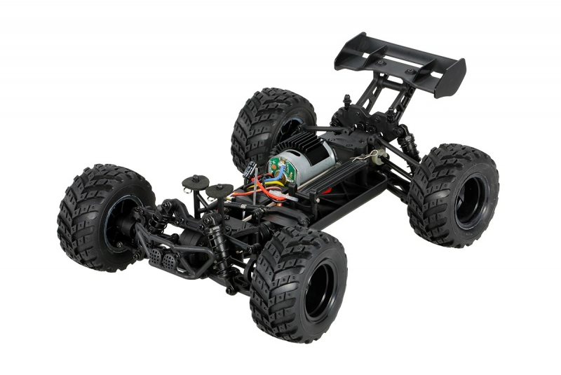 Конструкция подвески радиоуправляемого внедорожника сделана практически такая же, как на настоящих гоночных машинах. Независимая подвеска на двойных поперечных рычагах спереди и сзади, мощные пружинные амортизаторы, прочные полуоси, надежные рычаги, все сделано для обеспечения надежности. Резиновые колеса с внедорожным протектором гарантируют отличную проходимость на любом бездорожье, в комплекте есть все, добавьте две батарейки в пульт, зарядите аккумулятор и можете наслаждаться гонками по бездорожью.