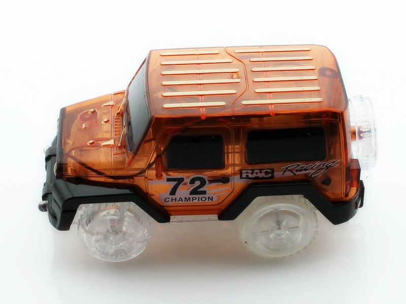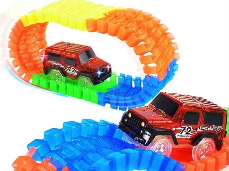 - Гоночные машинки Мэджик Трэк оснащены светодиодными огнями. Вставьте батарейки и играйте!