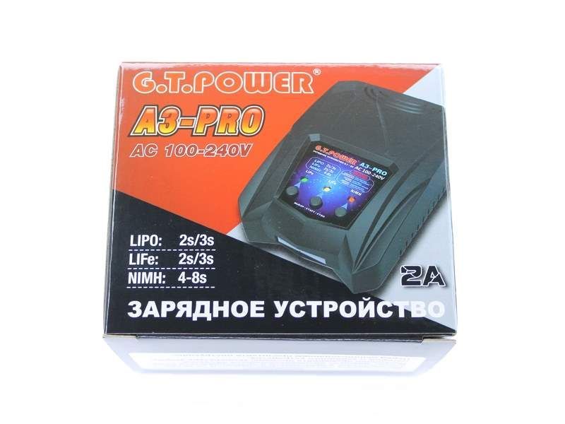 Универсальное зарядное устройство G.T.Power A3PRO V2 для заряда LiPo/LiFe/NiMh. Выходная мощность 16W, простой и понятный интерфейс.