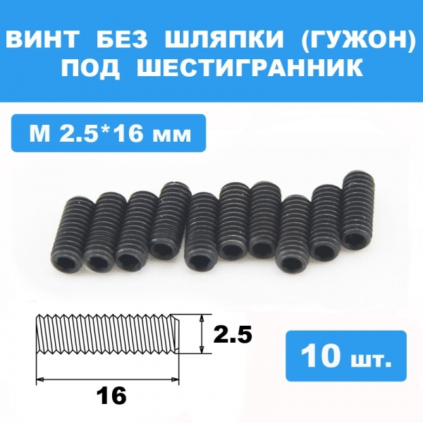 Винты М2.5*16мм (10шт) без шляпки под шестигранник