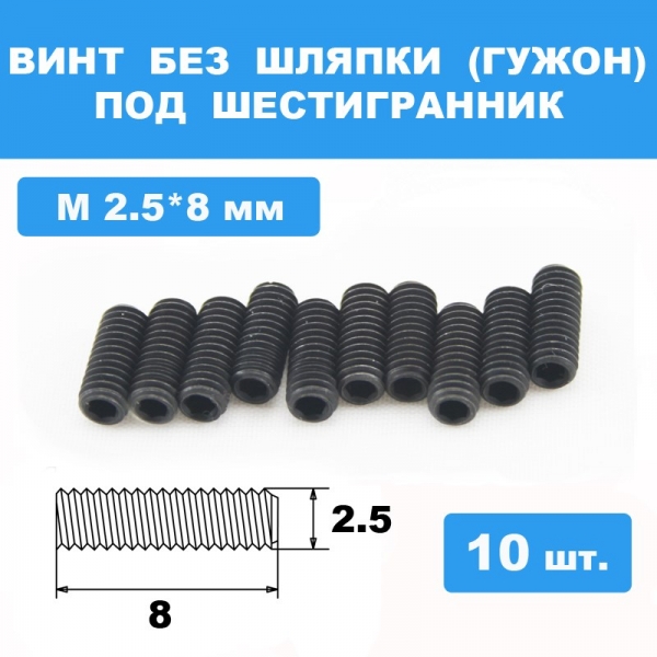 Винты М2.5*8мм (10шт) без шляпки под шестигранник