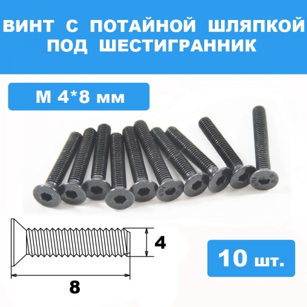 Комплект винтов М4*8мм (10шт) с потайной шляпкой под шестигранник.