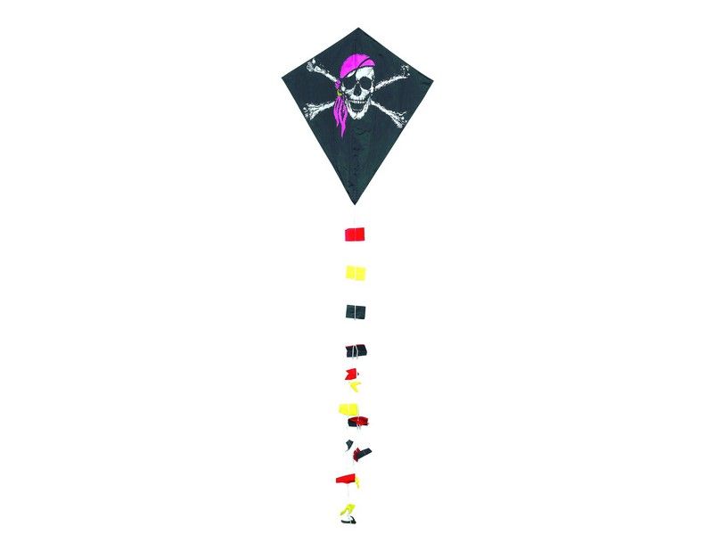 Воздушный змей в расцветке "Пират" размером 70х60 см рассчитан на начинающих без опыта полетов. Управление полетом воздушного змея осуществляется при помощи стропы, один конец которой прикреплен к змею, а второй - к ручке, достаточно удобной чтобы контролировать полет.