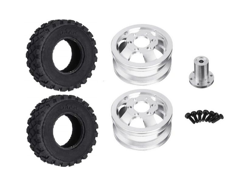 Заднее тюнингованное колесо с металлическим диском (сдвоенное) для апгрейда радиоуправляемых моделей WPL масштаба 1/16.