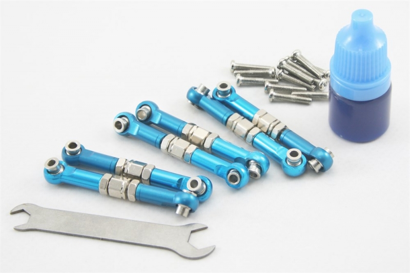 Набор из шести алюминиевых регулируемых тяг с фиксатором резьбы и регулировочным ключом, комплектом гаек и винтов для крепления для радиоуправляемых моделей Remo Hobby масштаба 1/16 (цвет синий).