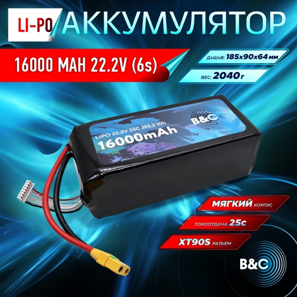 Аккумулятор B&C 16000 MAH 22.2V (6s) 25C (SoftCase, разъем XT90S)