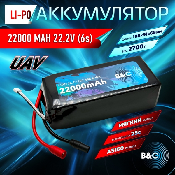 Аккумулятор B&C 22000 MAH 22.2V (6s) 25C (SoftCase, разъем AS150)