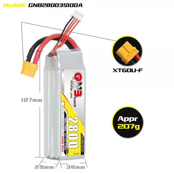 - аккумуляторная батарея GNB 2800MAH 3S1P 11.1V 100С/200C XT60 SoftCase