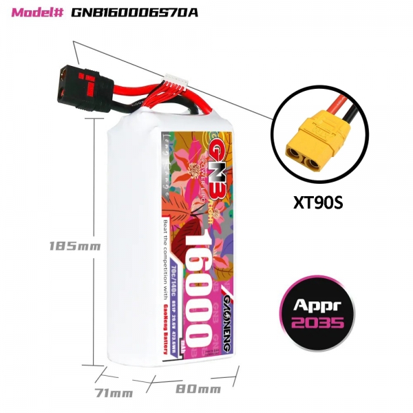 Аккумулятор GNB LiPo 16000MAH 6S1P 22.2V 70С/140C XT90S SoftCase