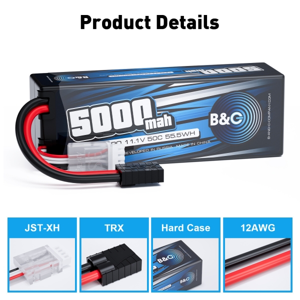 Аккумулятор LiPo B&C - 11.1v 5000мАч 50C (3S, Hardcase, разъём TRX)