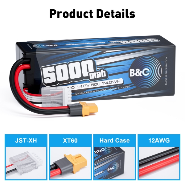 Аккумулятор LiPo B&C - 14.8v 5000мАч 50C (4S, Hardcase, разъём XT60)