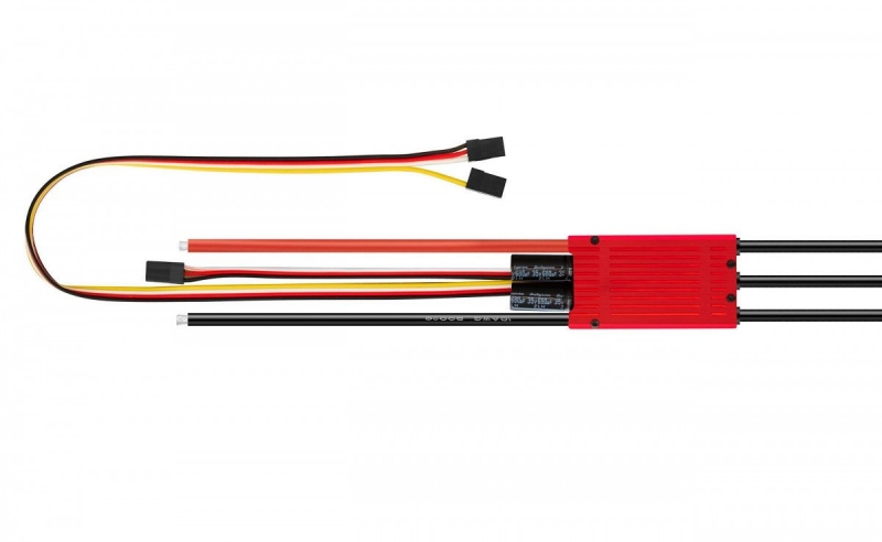 Бесколлекторный регулятор для самолётов SkyWalker 120A V2 от компании HobbyWing. Кратковременный пиковый ток устройства – 150А. Питание регулятора SkyWalker 120A производится от аккумулятора LiPo от 3-х до 8 банок. Регулятор оснащён высокопроизводительным 32-битный ARM M4 процессором с частотой до 120 МГц и поддерживает двигатели с максимальной скоростью до 300 000 об/мин (2-полюсный двигатель). Высокое качество и надежность делают SkyWalker V2 очень экономичным. Технология DEO (Оптимизация эффективности управления) реализованная в регуляторе, имеет множество преимуществ, среди которых быстрый и плавный отклик акселератора, лучшая стабильность и гибкость во время полета, более высокая эффективность управления, более длительное время полета, более низкая температура ESC и более надежная работа. При включенном режиме обратного торможения и линейного обратного торможения может эффективно сократить посадочную дистанцию самолета для имитации посадки реального самолета. Также доступны режим обычного торможения и режим отключения тормоза. (Эта функция запатентованна компанией HobbyWing) Режим поиска может помочь пользователям найти свой самолет по подаче звукового сигнала после падения самолета в заросшей местности, где его трудно найти. Этот режим также можно использовать, чтобы предложить пользователю отключить аккумулятор от регулятора, который проработал заданное время, чтобы предотвратить его от разрядки и повреждения.