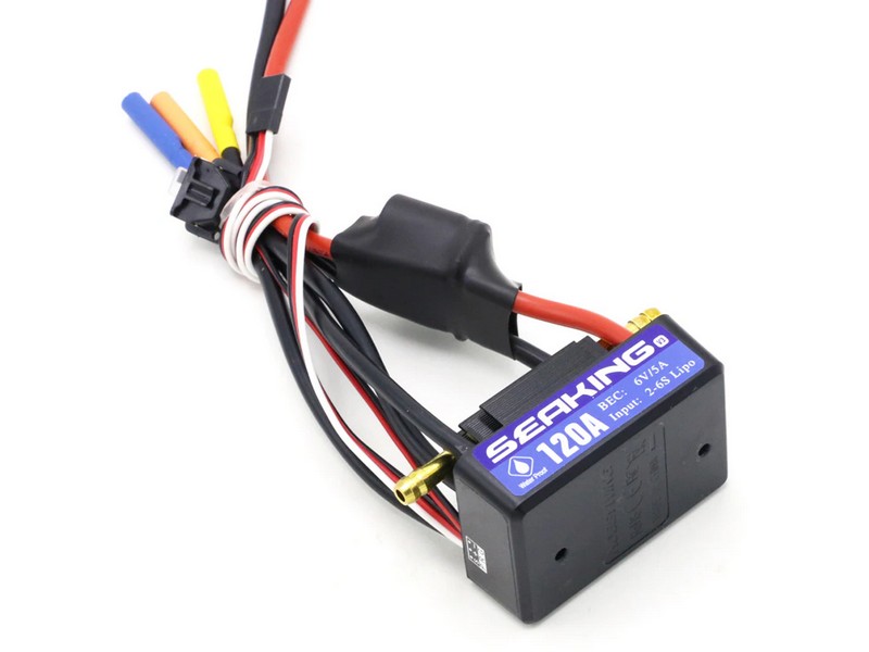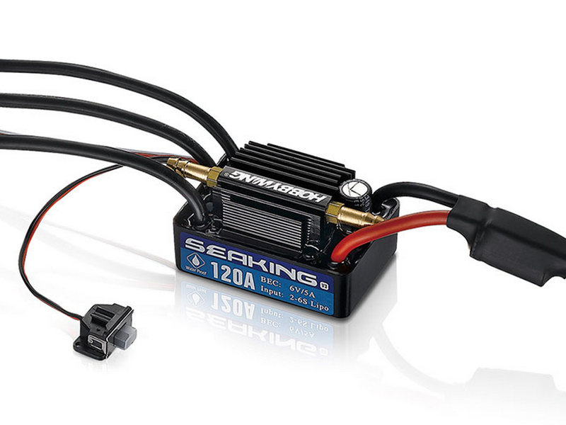 Влагозащищённый регулятор оборотов HobbyWing Seaking V3 120A (Seaking-120A-V3) судомодельный с водяным охлаждением для бесколлекторных моторов. Предназначен для моделей лодок и катеров длиной до 110 см.
