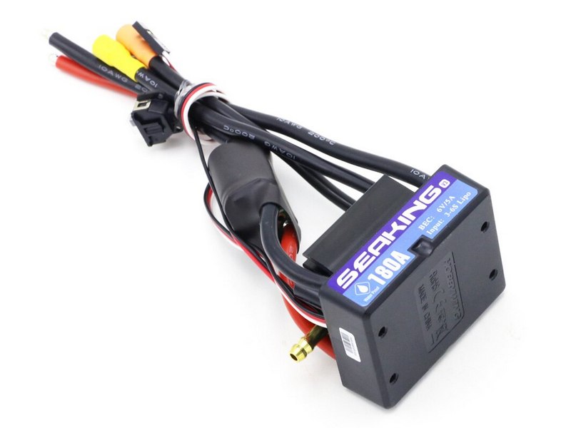 Влагозащищённый регулятор оборотов HobbyWing Seaking V3 180A (Seaking-180A-V3) судомодельный с водяным охлаждением для бесколлекторных моторов. Предназначен для моделей лодок и катеров длиной до 130 см.