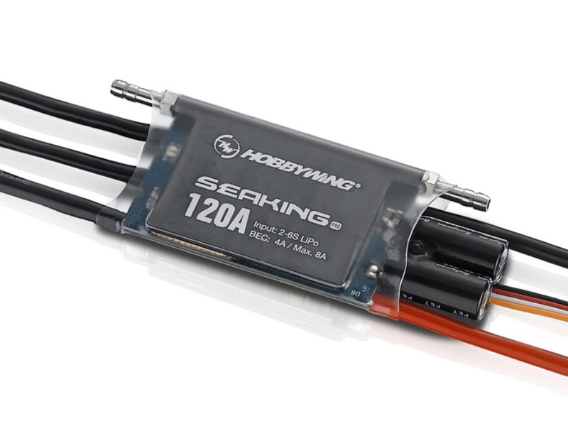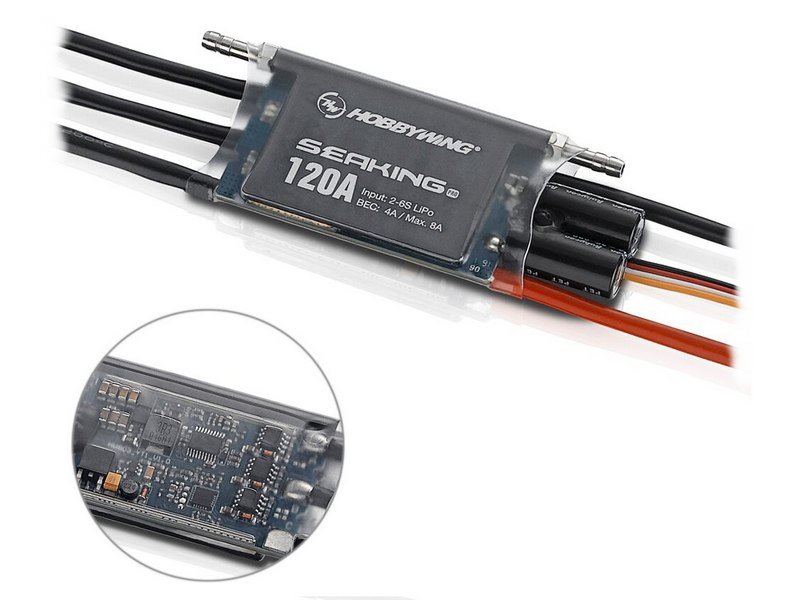 Влагозащищённый регулятор оборотов HobbyWing Seaking Pro 120A 2-6S (Seaking Pro-120A) судомодельный с водяным охлаждением для бесколлекторных моторов.