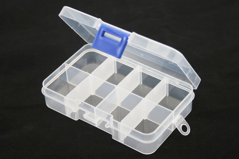 Пластиковый прозрачный короб с замком для хранения крепежа (8 ячеек).