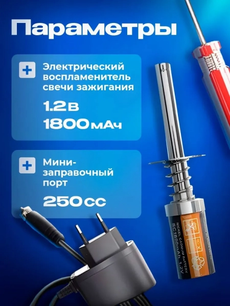 - Электрический накал свечи зажигания: 1,2 В 1800 мАч;