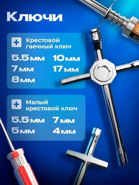 - большой болонный ключ: 5,5 мм/7 мм/8 мм/10 мм/17 мм;