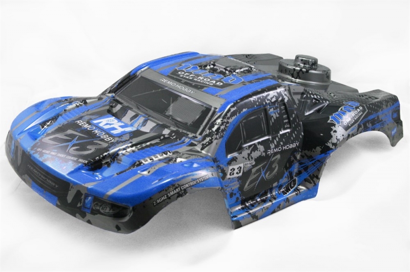 Окрашенный в синий цвет кузов для шорт-корс Remo Hobby EX3 1/10.