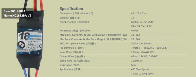 Dualsky XC1812BA V2, ESC 18A, 2-4s LiPo, for plane & heli