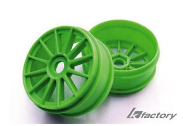 K Factory Диски багги 1/8 - (12 спиц / 17mm / Green/ "No-Slots") 2шт