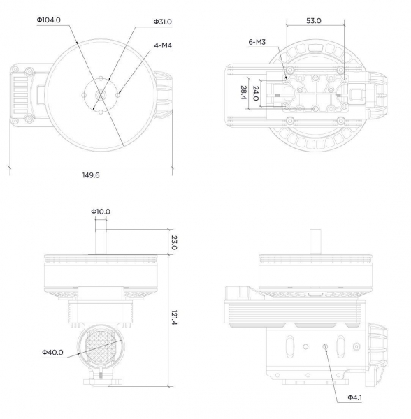 - монтажные отверстия для сопла: φ28.4mm-2*M3.