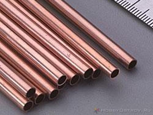 Круглая медная трубка внешним диаметром 3 мм и толщиной стенок примерно 0,36 мм. Длина 30 см. Применяется при изготовлении петель, нарезке рымов (колец), для деталей рангоута яхт и на действующих моделях. Легко гнется и обрабатывается. Количество 4 штуки.